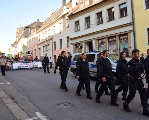 Eigentlich ist Annaberg eine gemütliche Kleinstadt im Herzen des Erzgebirges, gestern allerdings wurde es unruhig in dem idyllischen Städtchen: Der „Schweigemarsch für das Leben“, organisiert vom Verband Lebensrecht Sachsen, zog durch die Innenstadt, und mit ihm zahlreiche Gegendemonstranten, die schon im Vorfeld angekündigten hatten, die Demonstration der Lebensschützer zu einem Desaster machen zu wollen. Ein Bericht von Regina König.